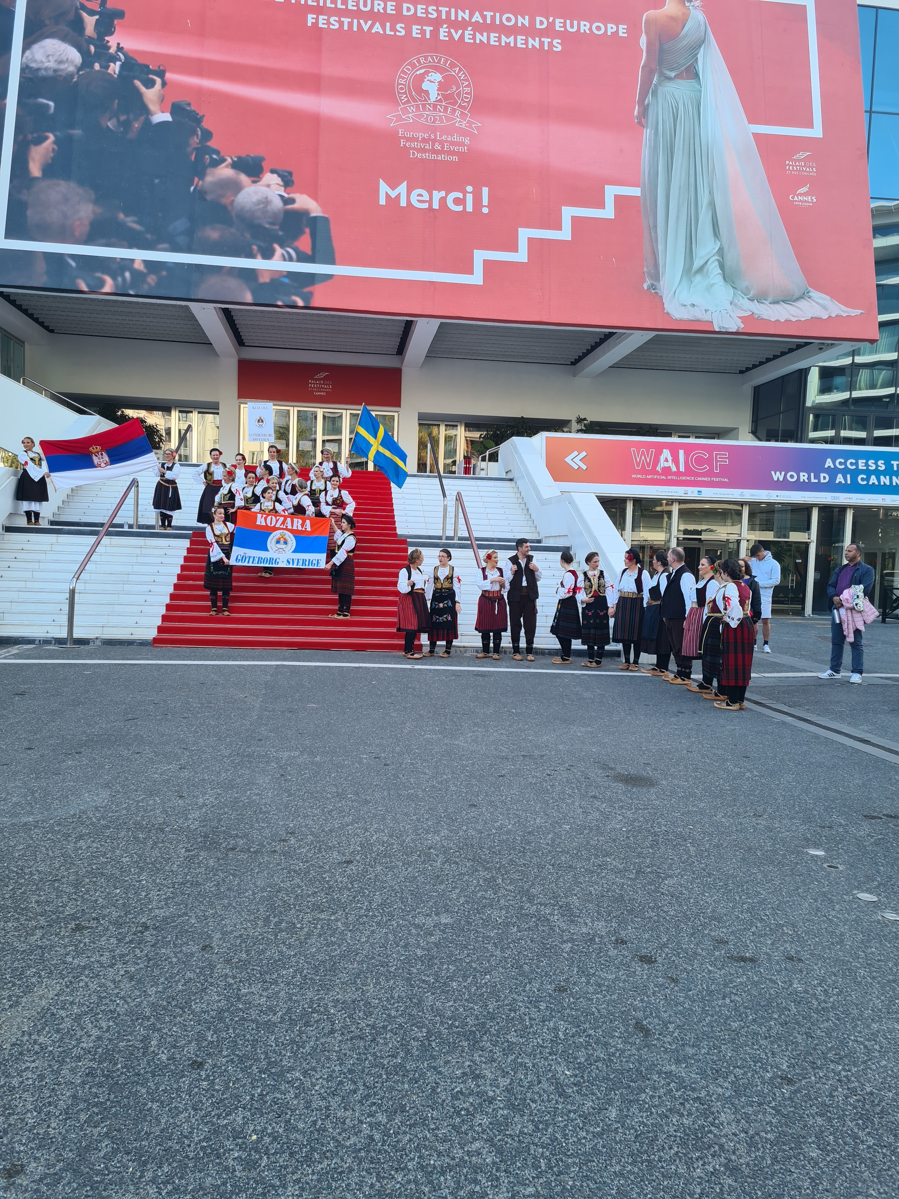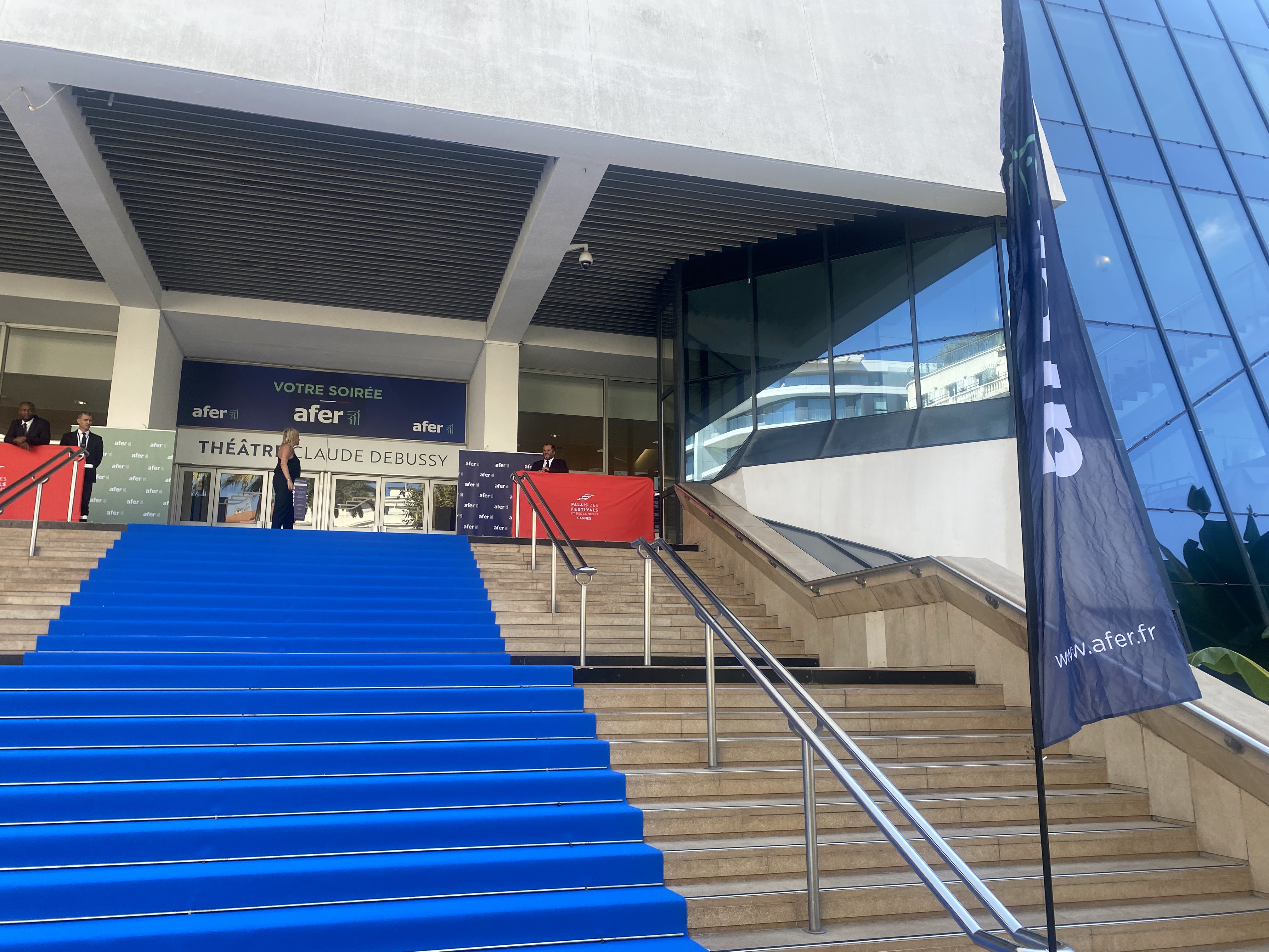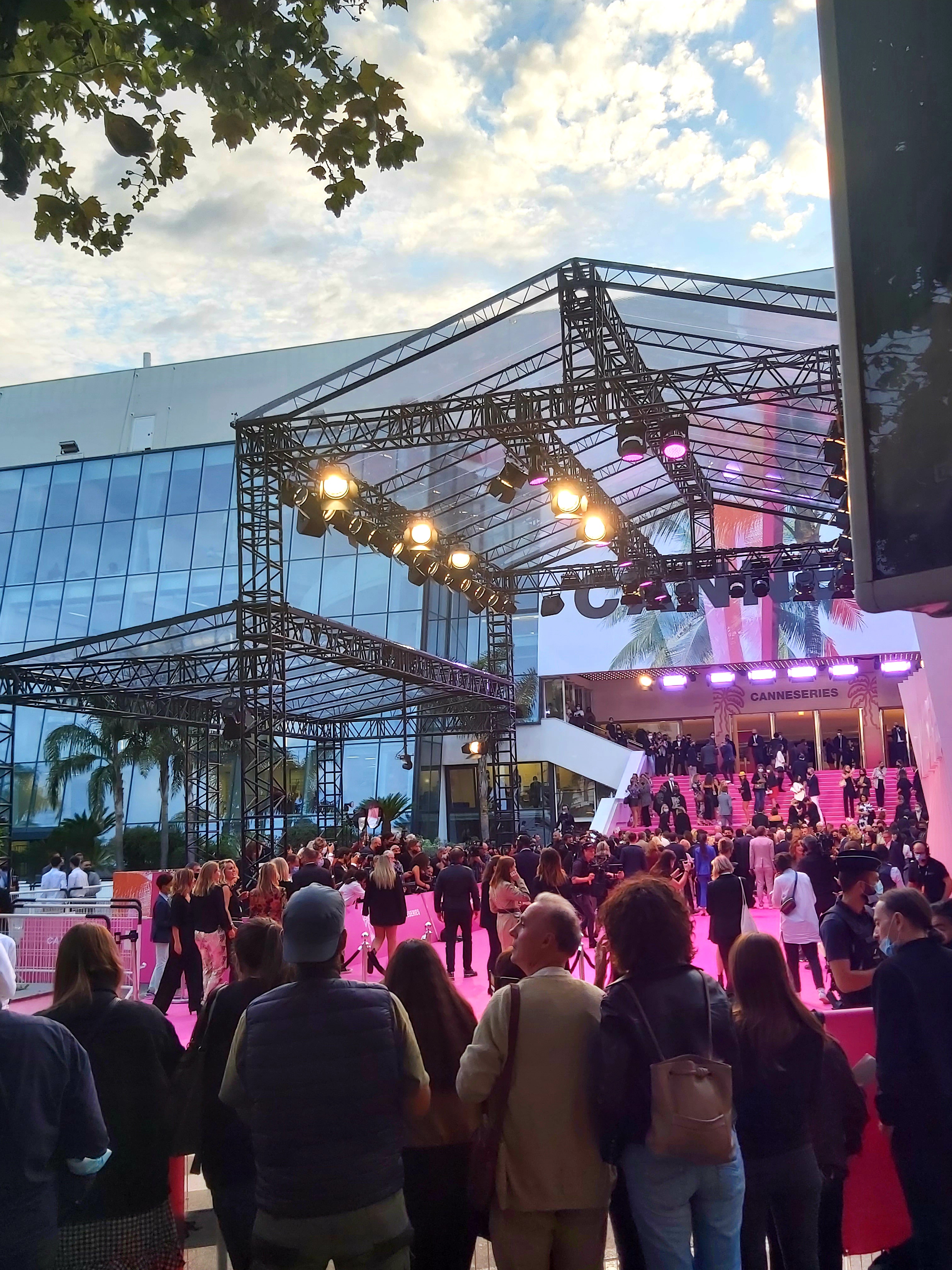 Lieu du festival de Cannes. Intéressant de voir le tapis rouge pendant le festival, une sécurité renforcée et divers papperazzi autour pour prendre des photos.