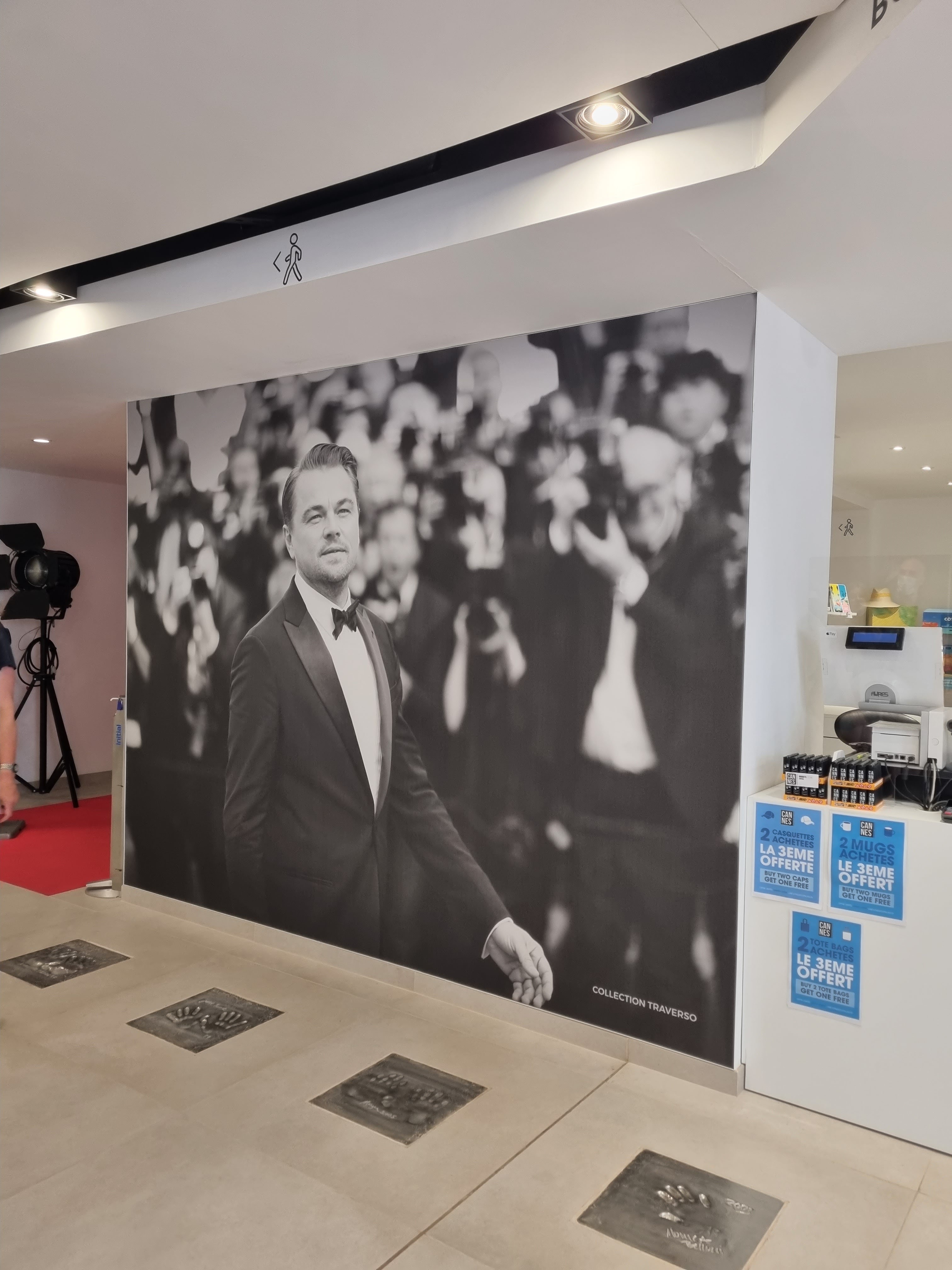 Je séjournais à Cannes en septembre 2017. Une femme âgée accompagnée de quelques amis voulait savoir où se trouvait l'endroit avec les empreintes de mains de stars. Je lui ai donné les indications car j'y étais allé quelques jours auparavant. Le Palais des Festivals et des Congrès dispose d'une boutique de cadeaux proposant des T-shirts uniques célébrant le Festival de Cannes. Les t-shirts sont mis à disposition pour que vous puissiez dire : « J'y suis allé, j'ai fait ça, j'ai reçu le t-shirt ».